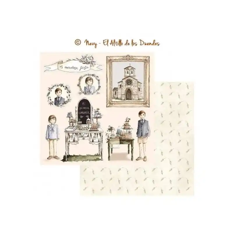 PAPEL SCRAP SUELTO de EL ALTILLO DE LOS DUENDES. Colección Ellos celebran su comunión. Papel 6/6.Doble cara30x30 cmEl Altillo de los Duendes190 gr.