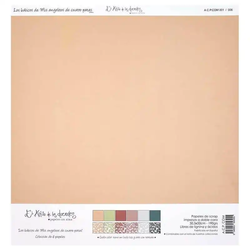 Kit BÁSICOS DE MIS ANGELITOS DE 4 PATAS de EL ALTILLO DE LOS DUENDESColección dedicada a nuestras mascotas. Ilustraciones realizadas a mano y pintadas a la acuarela por Nevy, un homenaje a nuestros amigos de 4 patas.6 papeles a doble cara perfectos para combinar con la colección. Una cara lisa y la otra con pequeños motivos.30.5×30.5 cm, 190 gr. libres de lignina y ácidos.Nuestros papeles tienen certificado PEFC, provenientes de bosques gestionados de forma sostenible y fuentes controladas. Así mismo, en un intento sostenibilidad, hemos sustituido el retractilado en plástico, por una bolsa de papel ecológica y reciclable con certificado FSC.Diseñado y fabricado en España