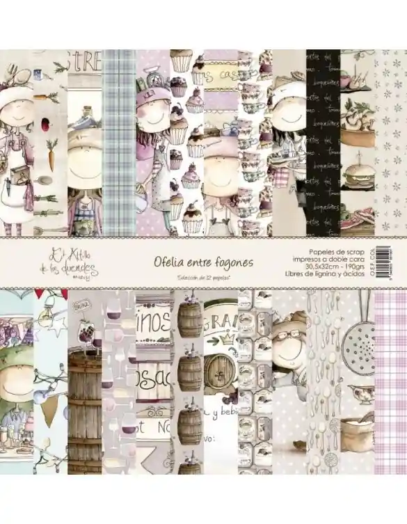 Kit OFELIA ENTRE FOGONES de EL ALTILLO DE LOS DUENDESColección de 12 papeles más la portada de 30.5×30.5 cm, 190 gr. sin ácidos ni ligninas