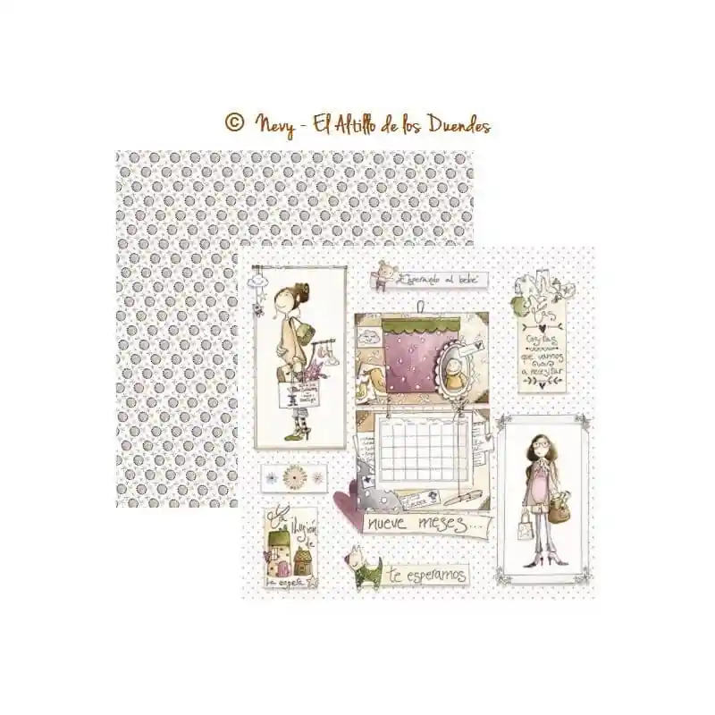 PAPEL SCRAP SUELTO de EL ALTILLO DE LOS DUENDES. Colección LA ILUSIÓN DE LA ESPERA. Papel 1/9.Doble cara30x30 cmEl Altillo de los Duendes190 gr.