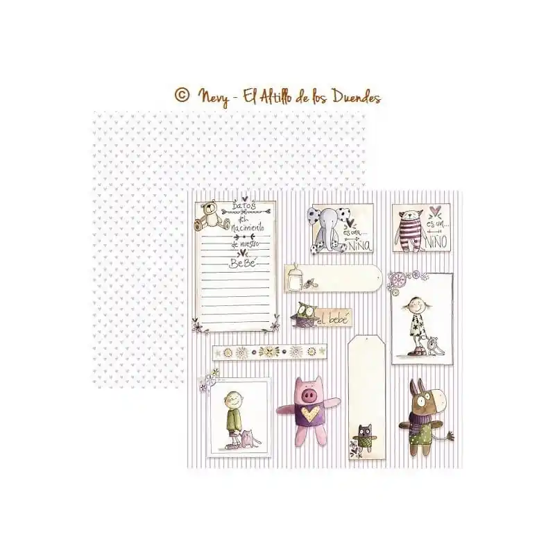 PAPEL SCRAP SUELTO de EL ALTILLO DE LOS DUENDES. Colección LA ILUSIÓN DE LA ESPERA. Papel 4/9.Doble cara30x30 cmEl Altillo de los Duendes190 gr.