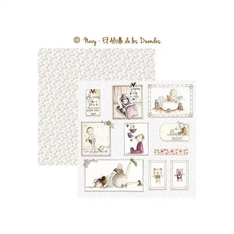 PAPEL SCRAP SUELTO de EL ALTILLO DE LOS DUENDES. Colección LA ILUSIÓN DE LA ESPERA. Papel 7/9.Doble cara30x30 cmEl Altillo de los Duendes190 gr.