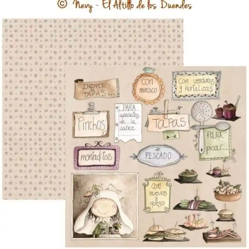 PAPEL SCRAP SUELTO de EL ALTILLO DE LOS DUENDES. Colección OFELIA ENTRE FOGONES. Papel 6/12.Doble cara30x30 cmEl Altillo de los Duendes190 gr.