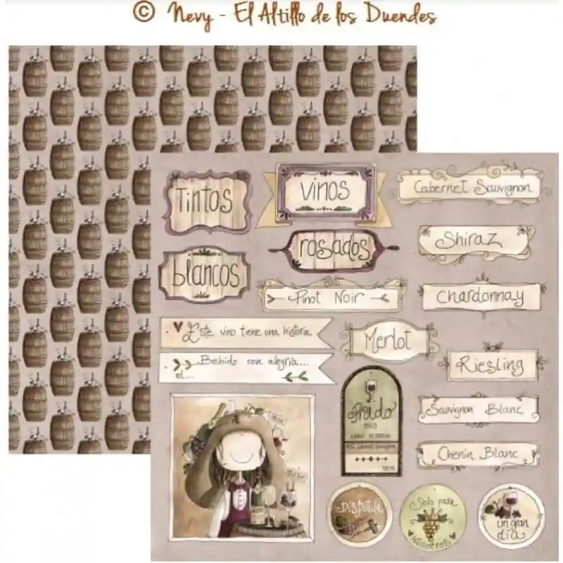 PAPEL SCRAP SUELTO de EL ALTILLO DE LOS DUENDES. Colección OFELIA ENTRE FOGONES. Papel 9/12.Doble cara30x30 cmEl Altillo de los Duendes190 gr.