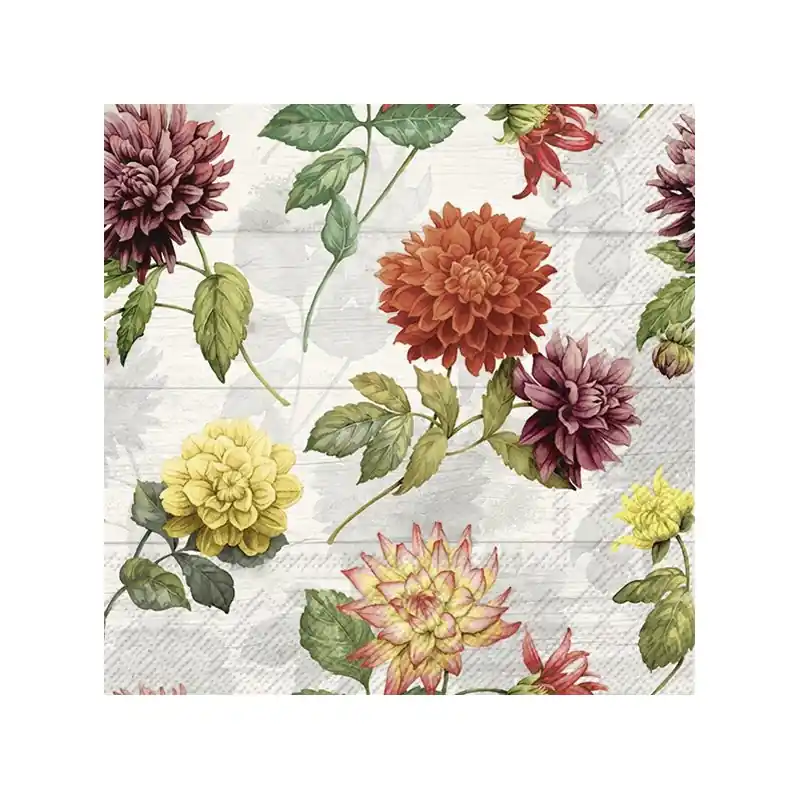 20 servilletas decoradas para decoupage de tamaño abierto 33×33 cm. Gran calidad. Servilletas de papel de 3 capas. Modelo Gemma de IHR Ideal Home Range. Precio por 20 servilletas.Te recomendamos que utilices un pegamento adecuado según el soporte sobre el que vayas a pegar la servilleta. Artpotch si el soporte es de madera o escayola. Porcelain potch si utilizas cerámica o porcelana y textil potch para textil. Disponemos de todos ellos en nuestra tienda online en varios tamaños.