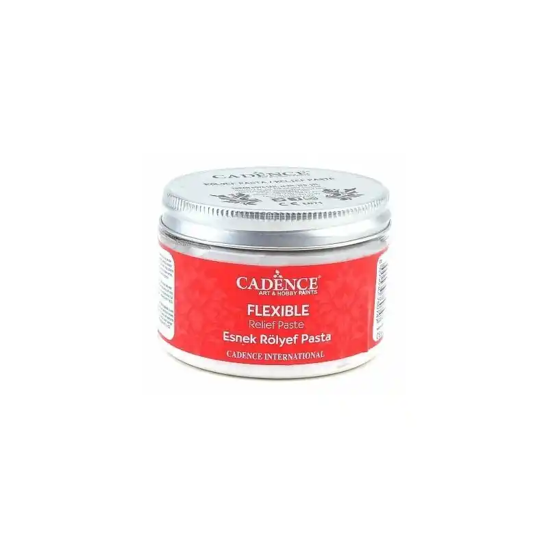 Pasta de relieve Cadence FLEXIBLE, satinada y suave con base de agua.Se puede aplicar en moldes decorativos blandos y se puede usar facilmente sobre superficies curvas. Esta pasta puede colorearse.No tóxico. Dispone de certificación europea CE y EN71