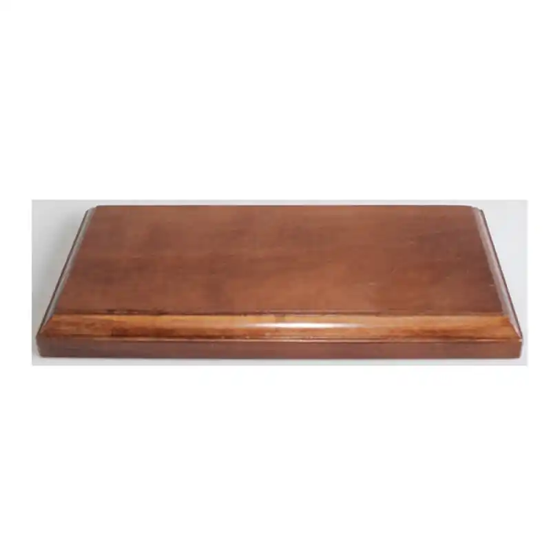 Peana de madera de abedul.Acabado en color nogal, barnizada.La medida corresponde a la parte inferior. La parte superior será el resultado de restarle entre 1 y 2 centímetros (segun medida).