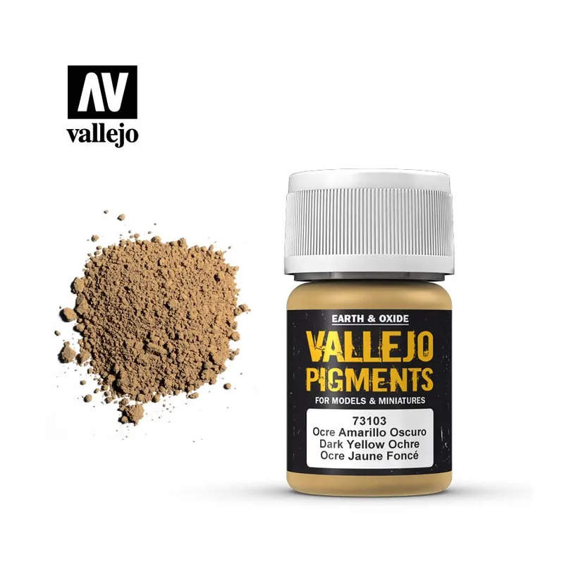 Pigmentos para modelismo se utilizan para envejecer y simular desgastes en los vehículos, blindajes, defensas y estructuras de las maquetas y para crear efectos de acumulaciones de polvo, barro y humo producido por el tiempo y el envejecimiento natural.Los pigmentos de esta gama son óxidos de hierro y tierras naturales, especialmente aptos para las diferentes condiciones climáticas y geográficas en los terrenos de un diorama.Para fijar los pigmentos a la superficie se emplea una resina acrílica de acabado mate, como nuestro Médium Mate (70.540) o Pigment Binder (26.233) que tiene un secado más lento, facilita simular aguadas de lluvia y nieve, y proporciona más tiempo para manipular el pigmento dentro y alrededor de los detalles de la maqueta.También se pueden realizar efectos especiales mezclando los pigmentos con los productos de la gama de Diorama Effects, como por ejemplo Agua Transparente (26.201) para efectos de grasa, aceite y barro húmedo, o Pasta Arenisca (26.215) para crear una superficie áspera y gruesa de barro seco o metal profundamente oxidado y desconchado. Los pigmentos de Tierra y Óxido de Hierro, para evitar derrames accidentales, se presentan con tapón de seguridad.Presentación:Tarros de 35 ml. (aprox.17-39 gramos según pigmento) con un cierre de seguridad.