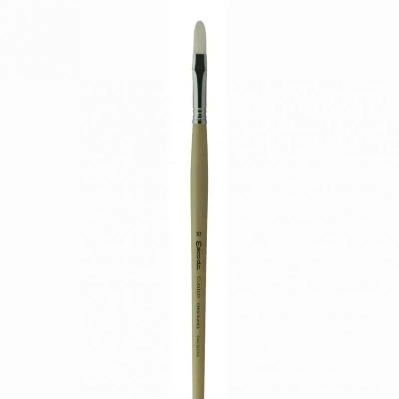 El pincel fabricado en cerda, es el que desde siempre y de forma tradicional se ha utilizado para pintar al óleo. Nuestra cerda se extrae del cerdo chino de Chungking de color blanco y es de la más alta calidad que se puede encontrar. Su natural dureza responde perfectamente para la técnica del óleo y el acrílico más o menos densos.