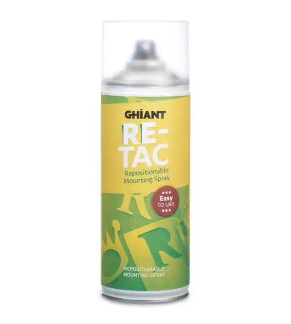 Adhesivo reposicionable transparente Ghiant Re-tac 400 ml.Adhesivo reposicionable transparente. No mancha.Para una unión temporal aplicar una sola capa.Para una unión permanente aplicar más de una capa.PH neutro. Calidad archivo garantizada. Máxima calidad de adhesión.Medida aproximada: 20 x 6 x 6 cmPeso: 385 gr.