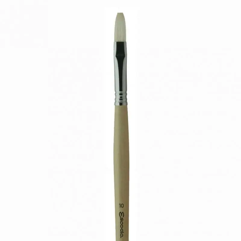 El pincel fabricado en cerda, es el que desde siempre y de forma tradicional se ha utilizado para pintar al óleo. Nuestra cerda se extrae del cerdo chino de Chungking de color blanco y es de la más alta calidad que se puede encontrar. Su natural dureza responde perfectamente para la técnica del óleo y el acrílico más o menos densos.