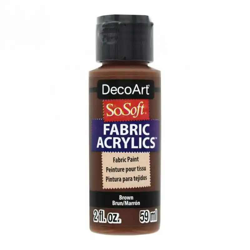 Algunas características clave de la pintura para tela SoSoft son:Textura suave: No endurece la tela, lo que permite que las prendas sigan siendo flexibles.Durabilidad: Es resistente al desgaste y se puede lavar sin que el diseño pierda calidad.Fácil de usar: No requiere el uso de calor para fijar la pintura a la tela.Variedad de colores: Está disponible en una amplia gama de colores vibrantes.Color Marrón