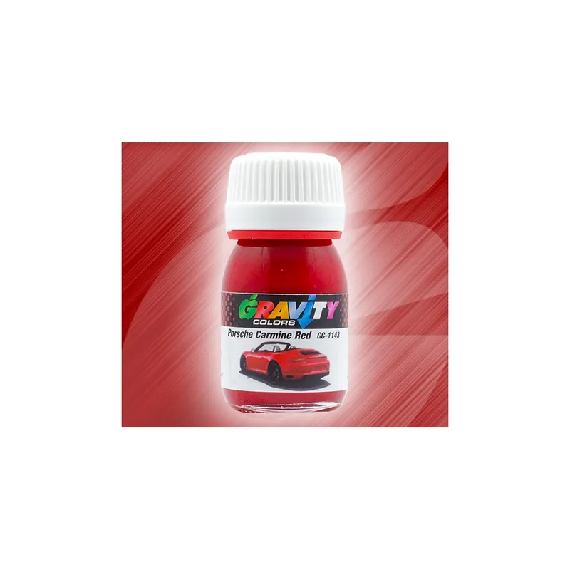 Porsche Carmine Red Gravity Colors Paint– GC-1143 Solid purplish red, coded as LM3C used by Porsche since 2011. Color matched airbrush ready lacquer paint. Net volume: 1 fl.oz/30ml