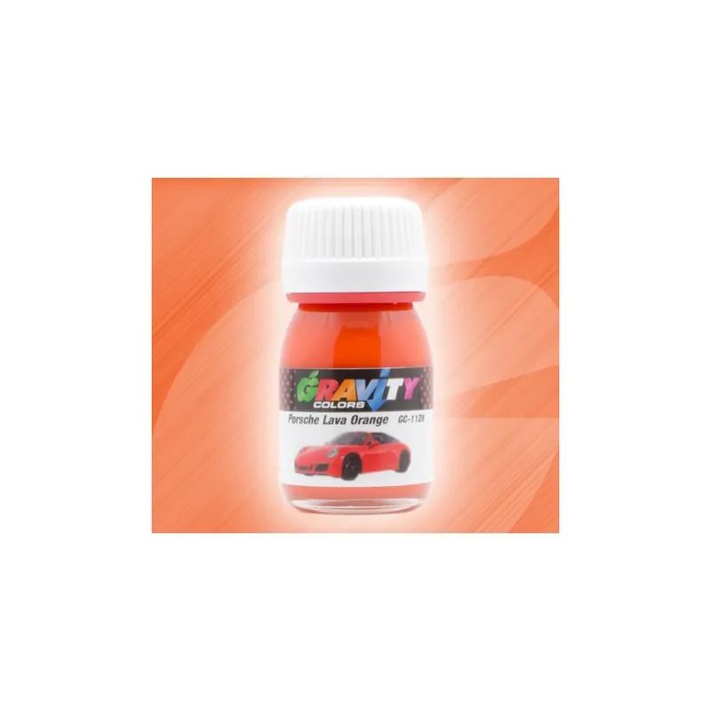 Porsche Lava Orange Gravity Colors Paint– GC-1128 Solid reddish orange color used for Porsche 911, Boxter and Cayman since 2015. Color matched airbrush ready lacquer paint. Net volume: 1 fl.oz/30ml