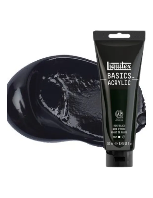 Pintura acrílica de viscosidad media, que marca los picos y pinceladas. Contiene pigmentos finos permanentes. Acabado satinado para todos los colores después del secado. Miscible con todos los otros productos acrílicos Liquitex (mediums y pinturas). Ideales para formar la rueda de color y mezcla de colores. Todos los colores llevan la etiqueta AP ACMI y se pueden utilizar de forma segura para la enseñanza. Usos y técnicas: Técnicas pastosas: por capas más gruesas que revelan las pinceladas y marcas de cuchillo o espátula. Pintura acrílica para aplicar sobre tela tradicional o panel, facilita la mezcla LIQUITEX ACRILICO BASICS 22ML NEGRO DE MARFIL
