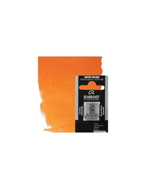 LasACUARELArelas Rembrandt están hechas con los pigmentos más puros y la mejor calidad de goma arábiga.Máxima transparencia, los colores conservan su luminosidad, máximo grado de resistencia a la luz.Las ACUARELArelas extra finas Rembrandt están exclusivamante fabricadas con materias primas de primera calidad y siguiendo los métodos de producción más modernos.ACUARELA REMBRANDT MEDIA PASTILLA 211 ANARANJADO CADMIO S3