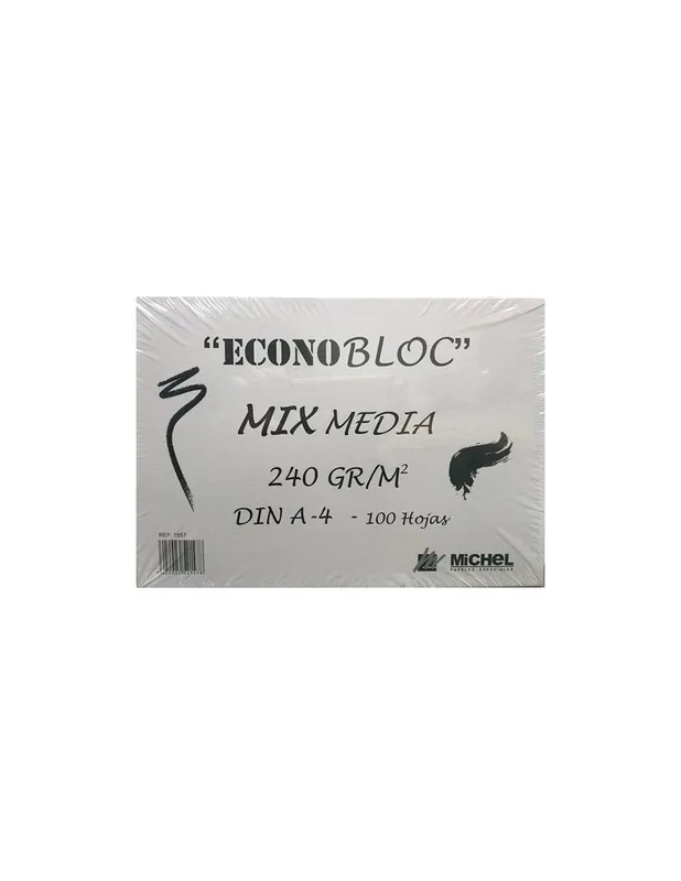 Bloc Mix Media de Michel papeles especiales formato Din A4,Encolado en el lateral izquierdoBloc de dibujo multi técnica económico, contiene 100 hojas de papel blanco de 240grs, ligeramente verjurado