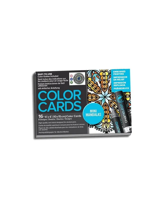 Cartas de color chameleon pens temática MINI MANDALASLibro de colorear con 16 postales de tamaño 15x10cm en papel de alta calidadIdeales para utilizar con rotuladores chameleon pens, incluyen guía de cada ilustración con indicaciones para sacar el mayor partido a toda la gama chameleonCromoterapia relajante Temática MINI MANDALAS