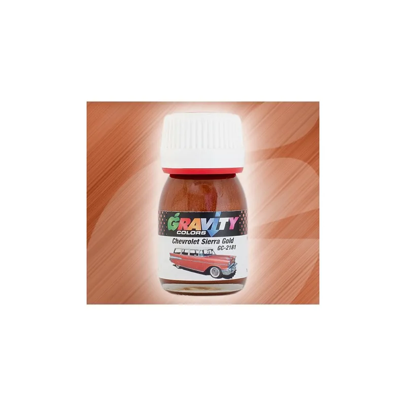 Chevrolet Sierra Gold Gravity Colors Paint– GC-2181Golden color used by Chevrolet 1956 and 1958, also named by Buick as Tan. Color matched airbrush ready lacquer paint. Net volume: 1 fl.oz/30ml