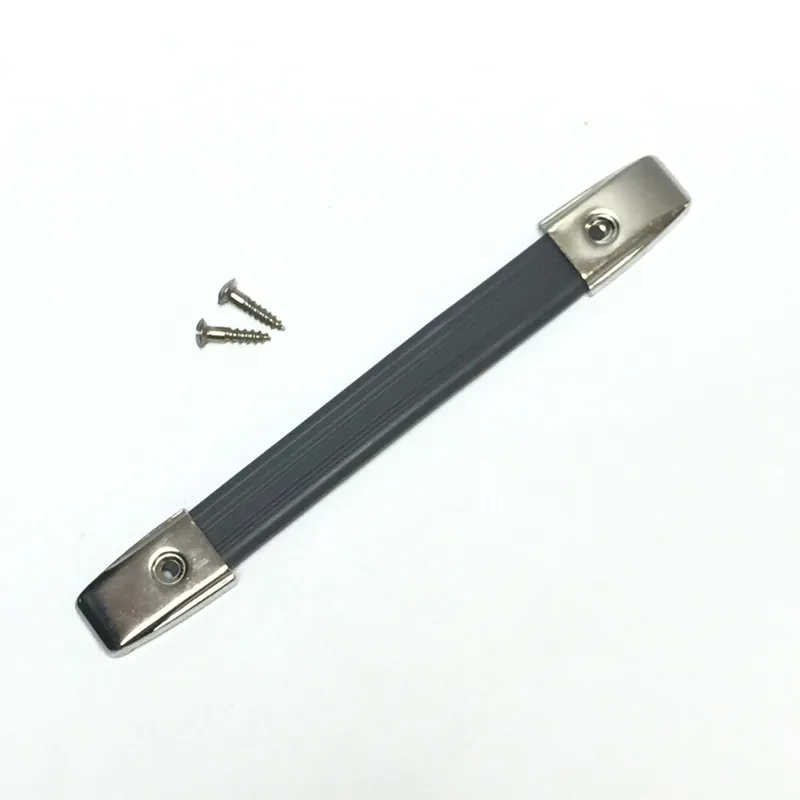 Pasamano en fleje de acero y plástico.Soportes metálicos en hierro y latón.Aplicaciones: Carteras, maletines ,cajas,puertas, estuches, maletas…Largo: 19 cm.