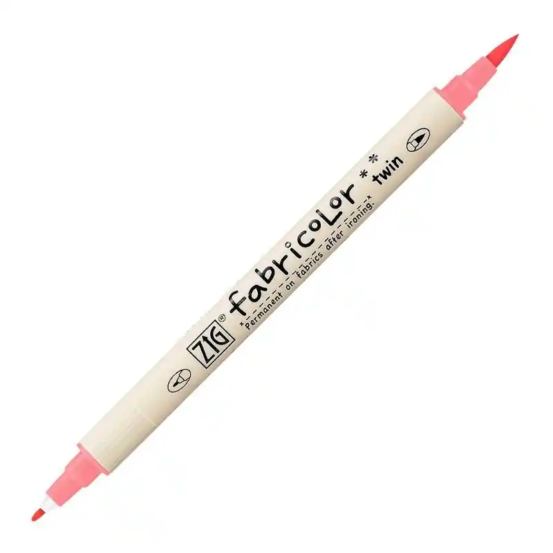 ROTULADOR TEXTIL ZIG FABRICOLOR TWIN de KURETAKERotulador para tela con pigmento a base de agua, sus colores son transparentes por lo que son recomendables para prendas de colores claros. Doble punta: Una punta fina para detalles y otra punta de pincel flexible muy polivalente.