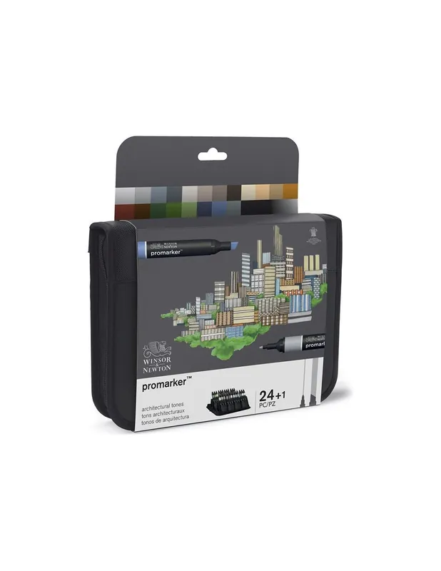 Este estuche incluye 24 rotuladores Promarker en una variedad de tonos, ideal para una amplia gama de aplicaciones artísticas, desde ilustración hasta diseño y técnicas mixtas.