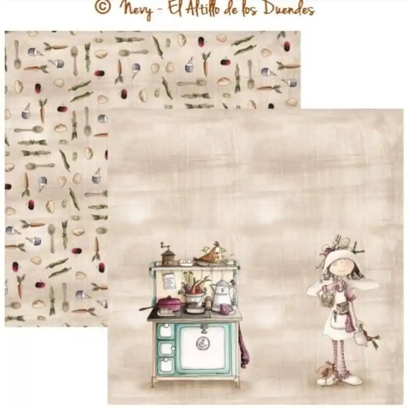PAPEL SCRAP SUELTO de EL ALTILLO DE LOS DUENDES. Colección OFELIA ENTRE FOGONES. Papel 1/12.Doble cara30x30 cmEl Altillo de los Duendes190 gr.