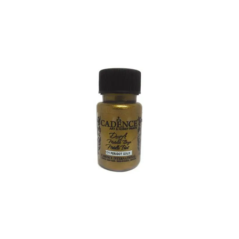 DORA METALLIC de CADENCEPintura metalizada al agua de alta calidad, usada principalmente para manualidades decorativas, Home Decor, mix media… Sus finísimos granos metálicos le dan a esta pintura un brillo excepcional.Presentada en botes de 50 ml.Gran poder de cubrición.Dispone de certificación europea CE y EN71Para un efecto aun más brillante se recomienda aplicar dos capas de pintura muy finas.