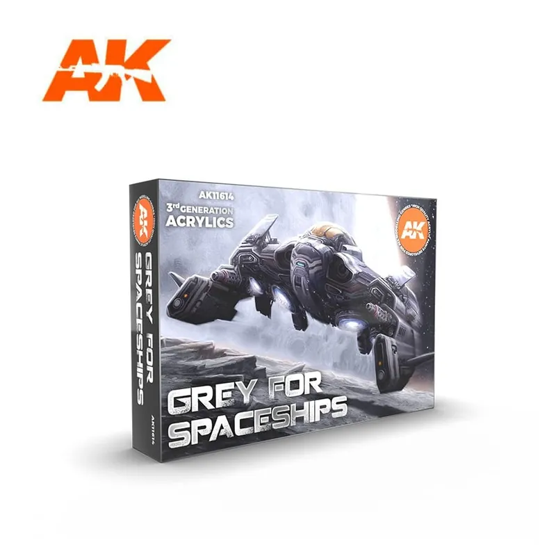Este set contiene 6 pinturas acrílicas esenciales para pintar cualquier figura gris o modelo de nave espacial, haciendo las transiciones adecuadas entre las sombras para lograr un aspecto realista. Se pueden aplicar con brocha, aprovechando la alta cobertura y adherencia de 3a generación. Cuando se diluyen con diluyente específico, se pueden retocar con aerógrafo tan fácilmente como las pinturas a base de laca. The set contains: