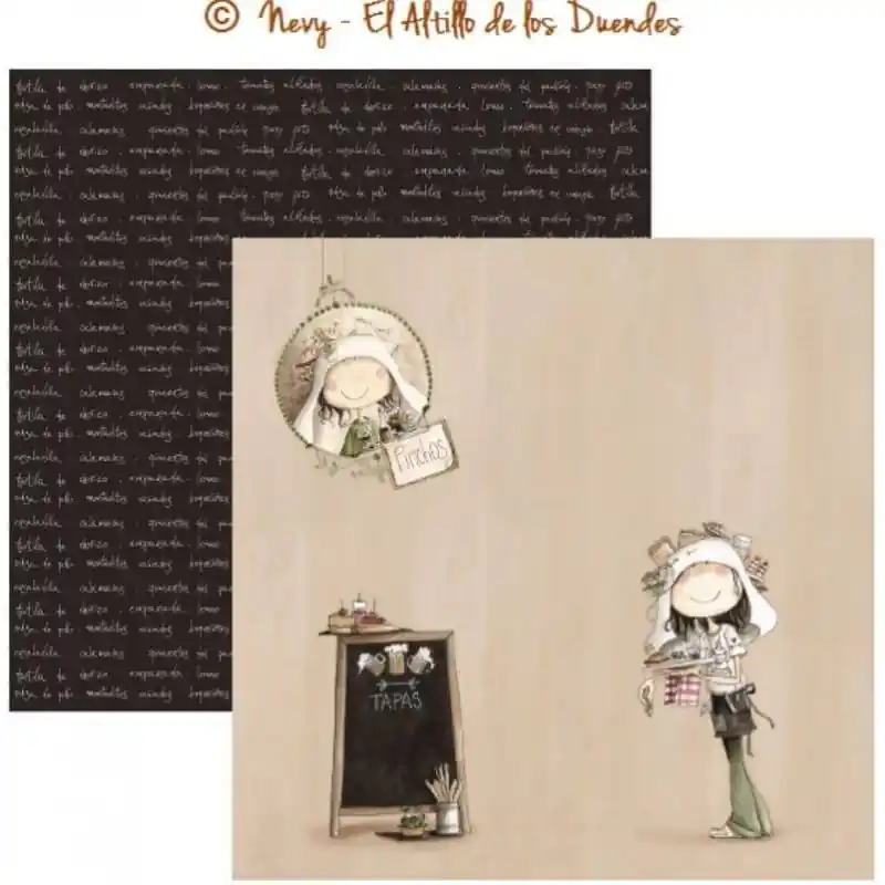PAPEL SCRAP SUELTO de EL ALTILLO DE LOS DUENDES. Colección OFELIA ENTRE FOGONES. Papel 5/12.Doble cara30x30 cmEl Altillo de los Duendes190 gr.