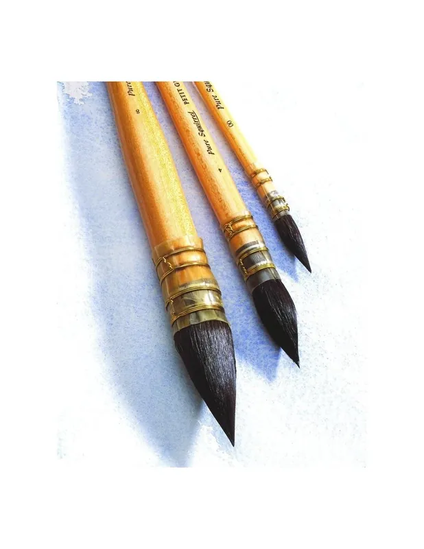 El pelo de ardilla más fino que puede encontrarse en un pincel.Ofrece una capilaridad sin igual.Para pinceladas muy largas en papel, sin volver a la paleta de colores.Excelente nervio, el mechón se vuelve a juntar de forma espontánea y se coloca en punta como por arte de magia.Ideal para aguadas y lavados.