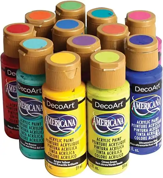 SET de 12 colores brillantes de Americana mate.Pintura acrílica Americana de DECOART de alta calidad con elevada concentración de pigmentos y una excelente cobertura. Ideal para decoracion y uso artístico.Aplicaciones : a pincel, rodillo, esponja, etc.