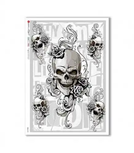 Rebajas PAPEL ARROZ PAPERDESIGNS A4 CALAVERAS Y ROSAS B/N