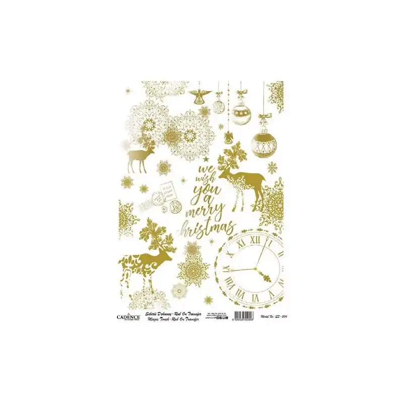 Transfers Navideños metalizados CADENCE que se aplican por presión, sin necesidad de usar agua.Ideales para trabajos de scrapbook, manualidades, tarjetería o mixmedia.