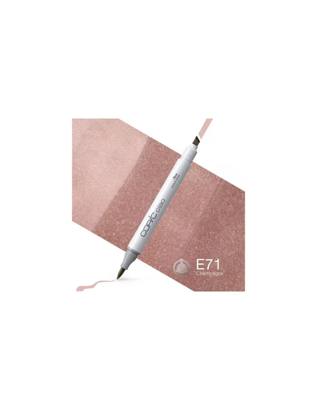ROTULADOR COPIC CIAO E71 CHAMPAGNELos rotuladores Copic Ciao son la versión económica de los rotuladores Copic. Tienen la misma calidad, usan la misma tinta y también son recargables . Son un poco más económicos que los otros rotuladores copic ya que tienen menos capacidad de tinta.Los rotuladores Copic ciao tienen dos puntas: una biselada para colorear grandes áreas y otra de pincel muy flexible que es ideal para dibujar.La tinta es a base de alcohol, es permanente y no es tóxica. Cuando se seca está libre de ácido. Con un frasco de tinta copic de 25 ml puedes recargar hasta 16 veces un copic ciao.