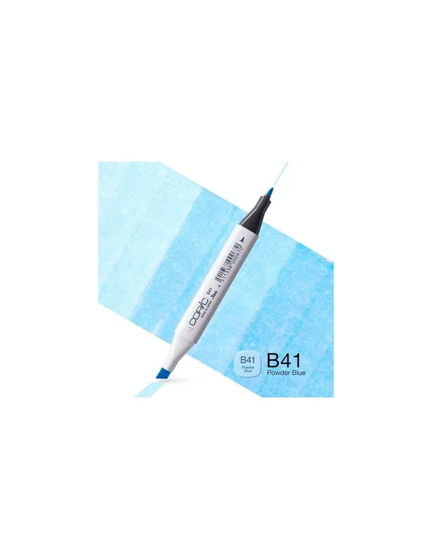 ROTULADOR COPIC CLASSIC B41 POWDER BLUERotulador recargable de doble punta ( ancha y fina).El sistema profesional Copic Classic ha estado diseñado hasta el útimo detalle.El rotulador tiene una forma cuadrada con cantos suaves y redondeados.La codificación sistemática con letras y números a los dos lados de los tapones simplifica la identificación del color.Dispone de 7 tipos de puntas alternativas.Si buscas dónde comprar copic, no hace falta que busques más en nuestra tienda online encontrarás toda la gama de productos Copic, y al precio mínimo garantizado!