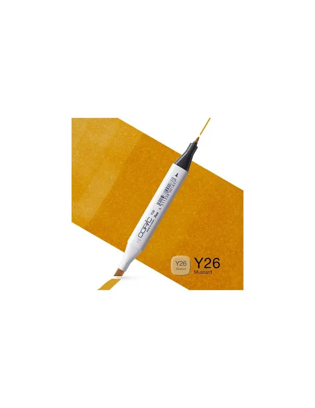 ROTULADOR COPIC CLASSIC Y26 MUSTARDRotulador recargable de doble punta ( ancha y fina).El sistema profesional Copic Classic ha estado diseñado hasta el útimo detalle.El rotulador tiene una forma cuadrada con cantos suaves y redondeados.La codificación sistemática con letras y números a los dos lados de los tapones simplifica la identificación del color.Dispone de 7 tipos de puntas alternativas.Si buscas dónde comprar copic, no hace falta que busques más en nuestra tienda online encontrarás toda la gama de productos Copic, y al precio mínimo garantizado!