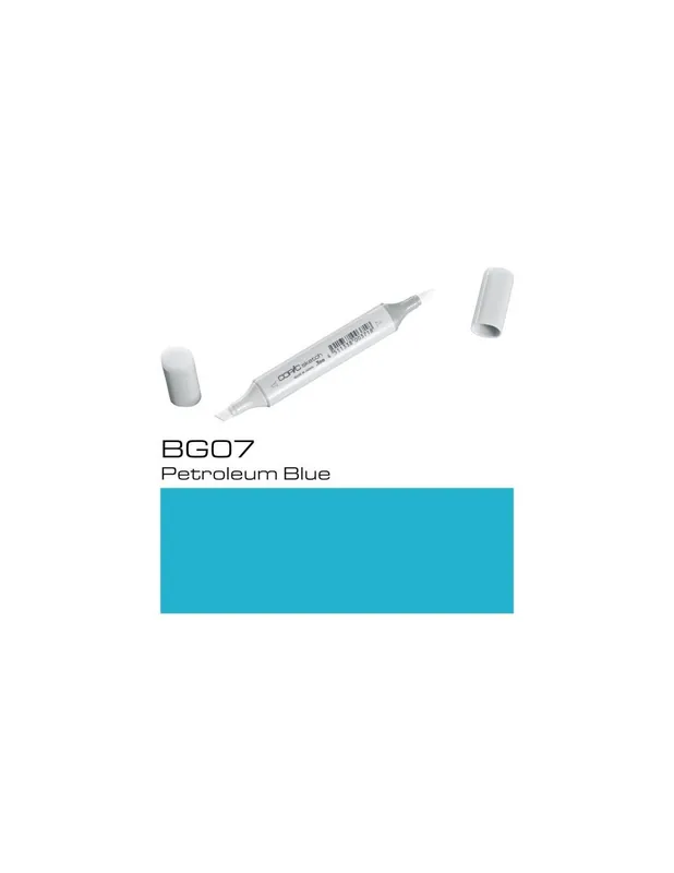 ROTULADOR COPIC SKETCH BG07 Petroleum BlueCOPIC SKETCH BG07 Petroleum BlueLos rotuladores copic sketch son los rotuladores preferidos de los profesionales del diseño, la ilustración, el dibujo manga y el scrap.Con sus 358 colores tienes todo un mundo de posibilidades a tu alcance, es la mayor gama de colores que existe en rotuladores, dificilmente no encontrarás aquella tonalidad que estás buscando.El rotulador copic sketch tiene dos puntas: una biselada para colorear grandes áreas y otra de pincel muy flexible ideal para dibujar. Las puntas se pueden cambiar cuando se gastan.Son rotuladores recargables, se puede volver a aprovechar la carcasa, con un frasco de tinta copic ink de 25 cc puedes rellenar hasta 12 veces un sketch.La tinta copic es a base de alcohol, es permanente y no es tóxica. Cuando se seca está libre de ácido.Los rotuladores copic sketch se pueden utilizar también con el sistema de aerografia copic.