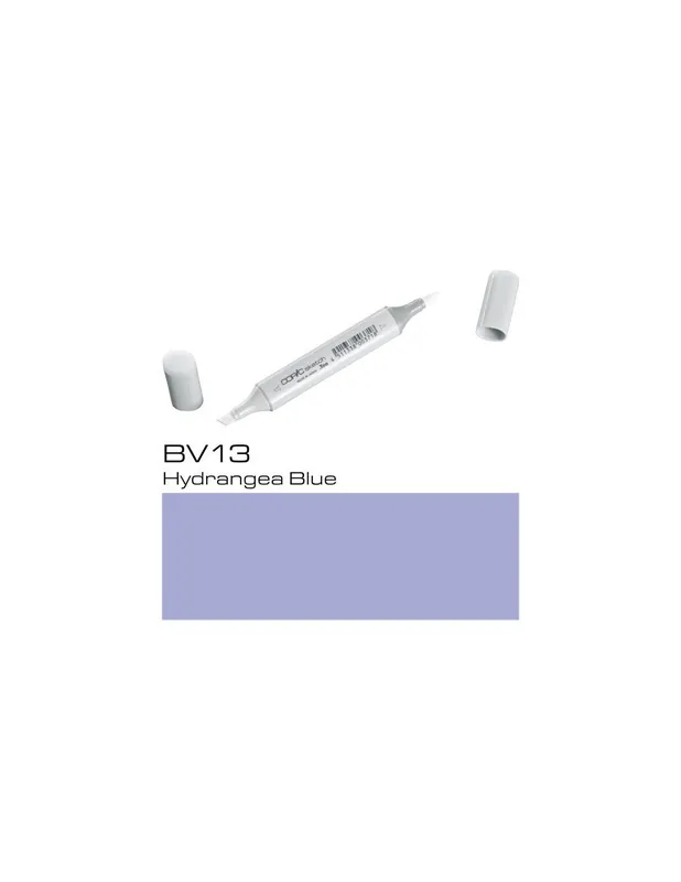 ROTULADOR COPIC SKETCH BV13 Hydrangea BlueCOPIC SKETCH BV13 Hydrangea BlueLos rotuladores copic sketch son los rotuladores preferidos de los profesionales del diseño, la ilustración, el dibujo manga y el scrap.Con sus 358 colores tienes todo un mundo de posibilidades a tu alcance, es la mayor gama de colores que existe en rotuladores, dificilmente no encontrarás aquella tonalidad que estás buscando.El rotulador copic sketch tiene dos puntas: una biselada para colorear grandes áreas y otra de pincel muy flexible ideal para dibujar. Las puntas se pueden cambiar cuando se gastan.Son rotuladores recargables, se puede volver a aprovechar la carcasa, con un frasco de tinta copic ink de 25 cc puedes rellenar hasta 12 veces un sketch.La tinta copic es a base de alcohol, es permanente y no es tóxica. Cuando se seca está libre de ácido.Los rotuladores copic sketch se pueden utilizar también con el sistema de aerografia copic.