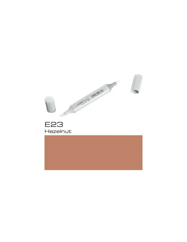 ROTULADOR COPIC SKETCH E23 HazelnutCOPIC SKETCH E23 HazelnutLos rotuladores copic sketch son los rotuladores preferidos de los profesionales del diseño, la ilustración, el dibujo manga y el scrap.Con sus 358 colores tienes todo un mundo de posibilidades a tu alcance, es la mayor gama de colores que existe en rotuladores, dificilmente no encontrarás aquella tonalidad que estás buscando.El rotulador copic sketch tiene dos puntas: una biselada para colorear grandes áreas y otra de pincel muy flexible ideal para dibujar. Las puntas se pueden cambiar cuando se gastan.Son rotuladores recargables, se puede volver a aprovechar la carcasa, con un frasco de tinta copic ink de 25 cc puedes rellenar hasta 12 veces un sketch.La tinta copic es a base de alcohol, es permanente y no es tóxica. Cuando se seca está libre de ácido.Los rotuladores copic sketch se pueden utilizar también con el sistema de aerografia copic.