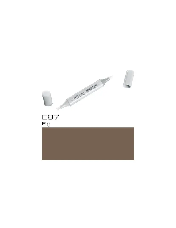 ROTULADOR COPIC SKETCH E87 FigCOPIC SKETCH E87 FigLos rotuladores copic sketch son los rotuladores preferidos de los profesionales del diseño, la ilustración, el dibujo manga y el scrap.Con sus 358 colores tienes todo un mundo de posibilidades a tu alcance, es la mayor gama de colores que existe en rotuladores, dificilmente no encontrarás aquella tonalidad que estás buscando.El rotulador copic sketch tiene dos puntas: una biselada para colorear grandes áreas y otra de pincel muy flexible ideal para dibujar. Las puntas se pueden cambiar cuando se gastan.Son rotuladores recargables, se puede volver a aprovechar la carcasa, con un frasco de tinta copic ink de 25 cc puedes rellenar hasta 12 veces un sketch.La tinta copic es a base de alcohol, es permanente y no es tóxica. Cuando se seca está libre de ácido.Los rotuladores copic sketch se pueden utilizar también con el sistema de aerografia copic.