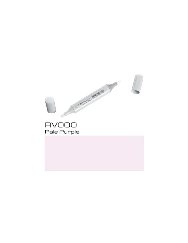ROTULADOR COPIC SKETCH RV000 Pale PurpleCOPIC SKETCH RV000 Pale PurpleLos rotuladores copic sketch son los rotuladores preferidos de los profesionales del diseño, la ilustración, el dibujo manga y el scrap.Con sus 358 colores tienes todo un mundo de posibilidades a tu alcance, es la mayor gama de colores que existe en rotuladores, dificilmente no encontrarás aquella tonalidad que estás buscando.El rotulador copic sketch tiene dos puntas: una biselada para colorear grandes áreas y otra de pincel muy flexible ideal para dibujar. Las puntas se pueden cambiar cuando se gastan.Son rotuladores recargables, se puede volver a aprovechar la carcasa, con un frasco de tinta copic ink de 25 cc puedes rellenar hasta 12 veces un sketch.La tinta copic es a base de alcohol, es permanente y no es tóxica. Cuando se seca está libre de ácido.Los rotuladores copic sketch se pueden utilizar también con el sistema de aerografia copic.