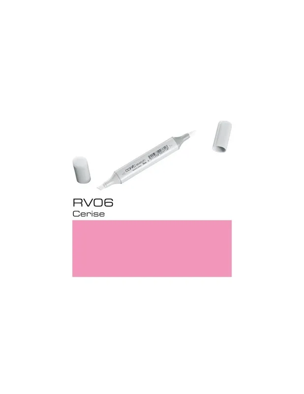 ROTULADOR COPIC SKETCH RV06 CeriseCOPIC SKETCH RV06 CeriseLos rotuladores copic sketch son los rotuladores preferidos de los profesionales del diseño, la ilustración, el dibujo manga y el scrap.Con sus 358 colores tienes todo un mundo de posibilidades a tu alcance, es la mayor gama de colores que existe en rotuladores, dificilmente no encontrarás aquella tonalidad que estás buscando.El rotulador copic sketch tiene dos puntas: una biselada para colorear grandes áreas y otra de pincel muy flexible ideal para dibujar. Las puntas se pueden cambiar cuando se gastan.Son rotuladores recargables, se puede volver a aprovechar la carcasa, con un frasco de tinta copic ink de 25 cc puedes rellenar hasta 12 veces un sketch.La tinta copic es a base de alcohol, es permanente y no es tóxica. Cuando se seca está libre de ácido.Los rotuladores copic sketch se pueden utilizar también con el sistema de aerografia copic.