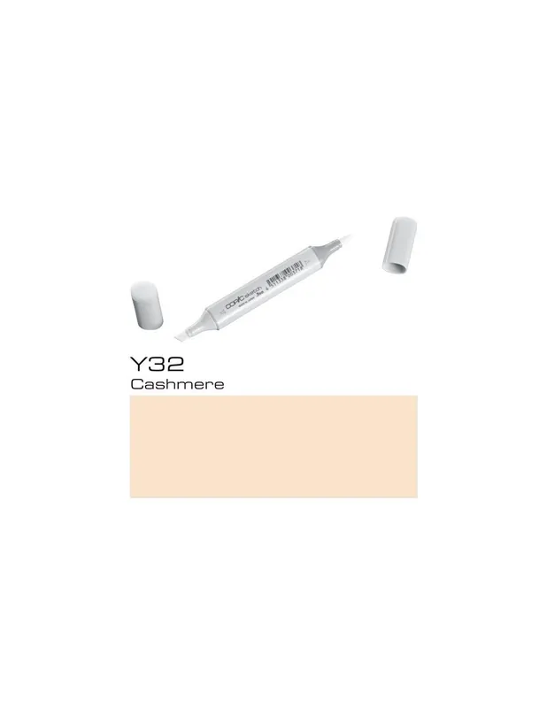 ROTULADOR COPIC SKETCH Y32 CashmereCOPIC SKETCH Y32 CashmereLos rotuladores copic sketch son los rotuladores preferidos de los profesionales del diseño, la ilustración, el dibujo manga y el scrap.Con sus 358 colores tienes todo un mundo de posibilidades a tu alcance, es la mayor gama de colores que existe en rotuladores, dificilmente no encontrarás aquella tonalidad que estás buscando.El rotulador copic sketch tiene dos puntas: una biselada para colorear grandes áreas y otra de pincel muy flexible ideal para dibujar. Las puntas se pueden cambiar cuando se gastan.Son rotuladores recargables, se puede volver a aprovechar la carcasa, con un frasco de tinta copic ink de 25 cc puedes rellenar hasta 12 veces un sketch.La tinta copic es a base de alcohol, es permanente y no es tóxica. Cuando se seca está libre de ácido.Los rotuladores copic sketch se pueden utilizar también con el sistema de aerografia copic.
