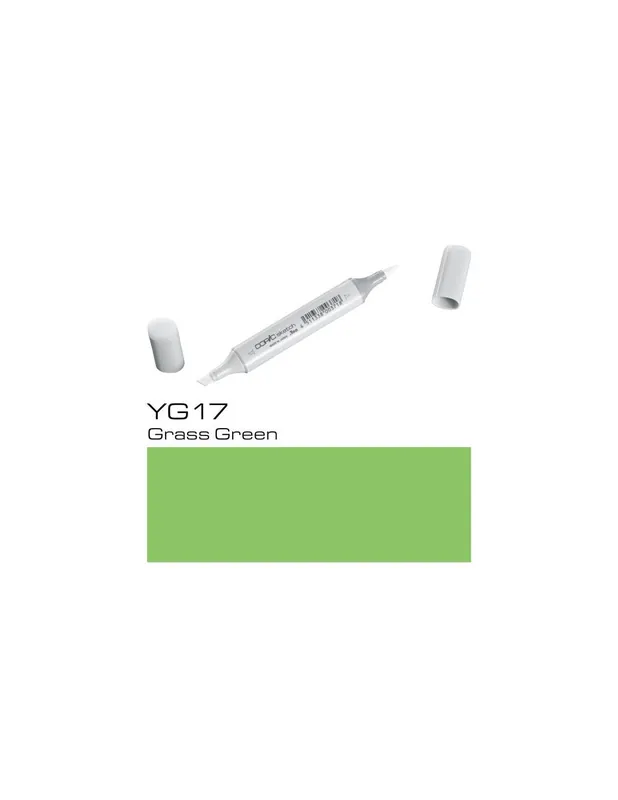 ROTULADOR COPIC SKETCH YG17 Grass greenCOPIC SKETCH YG17 Grass greenLos rotuladores copic sketch son los rotuladores preferidos de los profesionales del diseño, la ilustración, el dibujo manga y el scrap.Con sus 358 colores tienes todo un mundo de posibilidades a tu alcance, es la mayor gama de colores que existe en rotuladores, dificilmente no encontrarás aquella tonalidad que estás buscando.El rotulador copic sketch tiene dos puntas: una biselada para colorear grandes áreas y otra de pincel muy flexible ideal para dibujar. Las puntas se pueden cambiar cuando se gastan.Son rotuladores recargables, se puede volver a aprovechar la carcasa, con un frasco de tinta copic ink de 25 cc puedes rellenar hasta 12 veces un sketch.La tinta copic es a base de alcohol, es permanente y no es tóxica. Cuando se seca está libre de ácido.Los rotuladores copic sketch se pueden utilizar también con el sistema de aerografia copic.