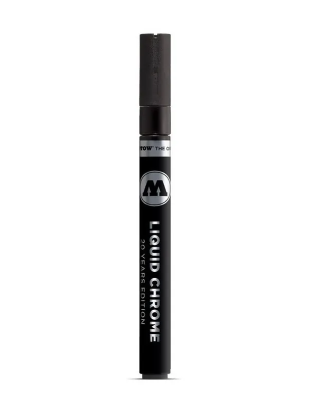 «Liquid Chrome», se trata de un excelente rotulador efecto plata cromada compuesto por tinta base alcohol permanente y válido para pintar sobre cualquier superficie.El acabado más brillante «efecto cristal» se consigue en superficies no porosas. ¡En las superficies más porosas el resultado también es sorprendente!