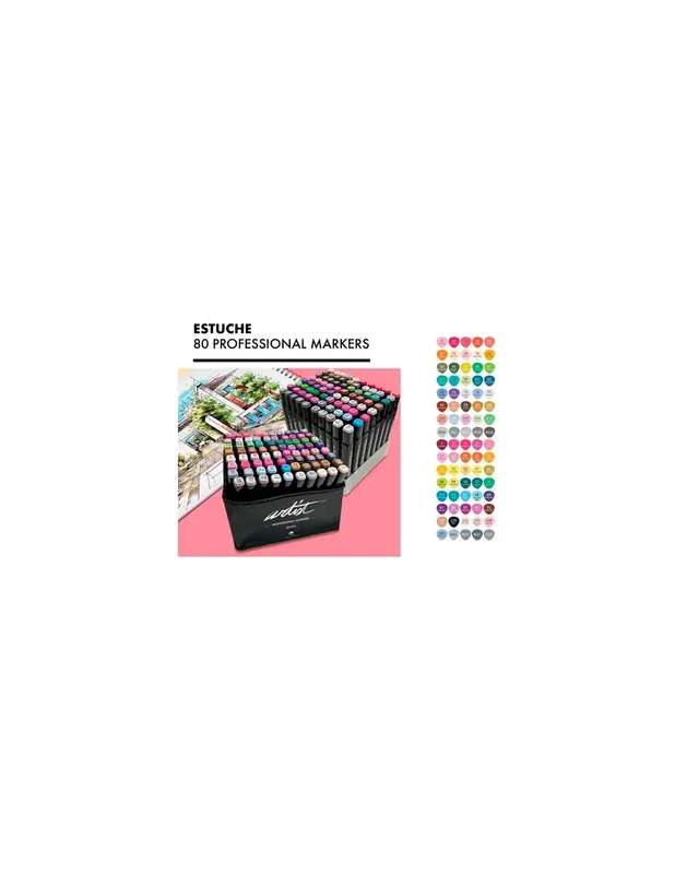 ESTUCHE 80 ROTULADORES ALEX BOG LUXURY CANVAS GAMA ARTIST DOBLE PUNTA. Incluye 80 rotuladores de calidad superior, perfectos para una amplia gama de técnicas artísticas y detallado diseño.