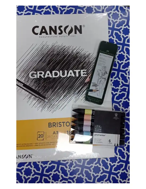SET 6 ROTULADORES PROMARKER PASTEL/ CAJA 6 LAPICES BLANDOS FABER/ BLOC A3 BISTROL 180GRS