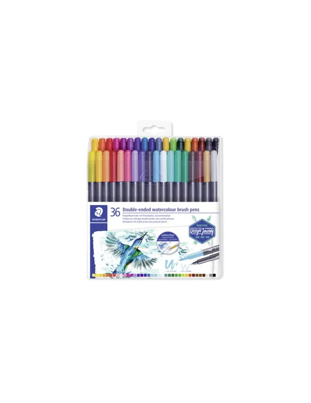 Rotuladores de doble punta acuarelable, rotulador y pincel, ideal para trazos variables y sombreados. Ancho de línea punta rotulador: 0,5-0,8 mm aprox. Ancho de línea punta pincel: 1,0-6,0 mm aprox.