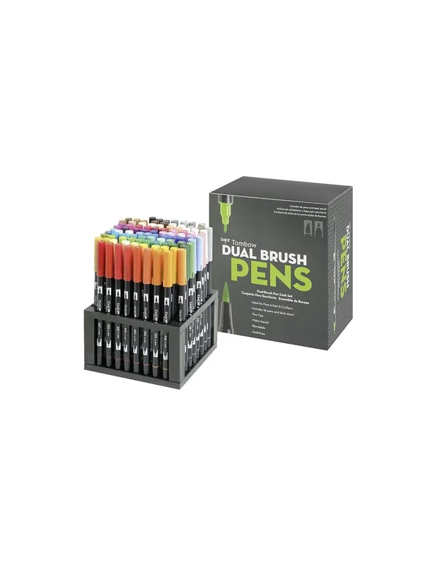 Set de 96 Rotuladores Tombow ABT Dual Brush es la elección definitiva para artistas, diseñadores y aficionados que buscan la máxima versatilidad y calidad en sus herramientas creativas. Cada rotulador de este set está equipado con dos puntas: una punta de pincel flexible que permite realizar trazos amplios, sombreados y técnicas de acuarela, y una punta fina ideal para detalles precisos y líneas definidas.